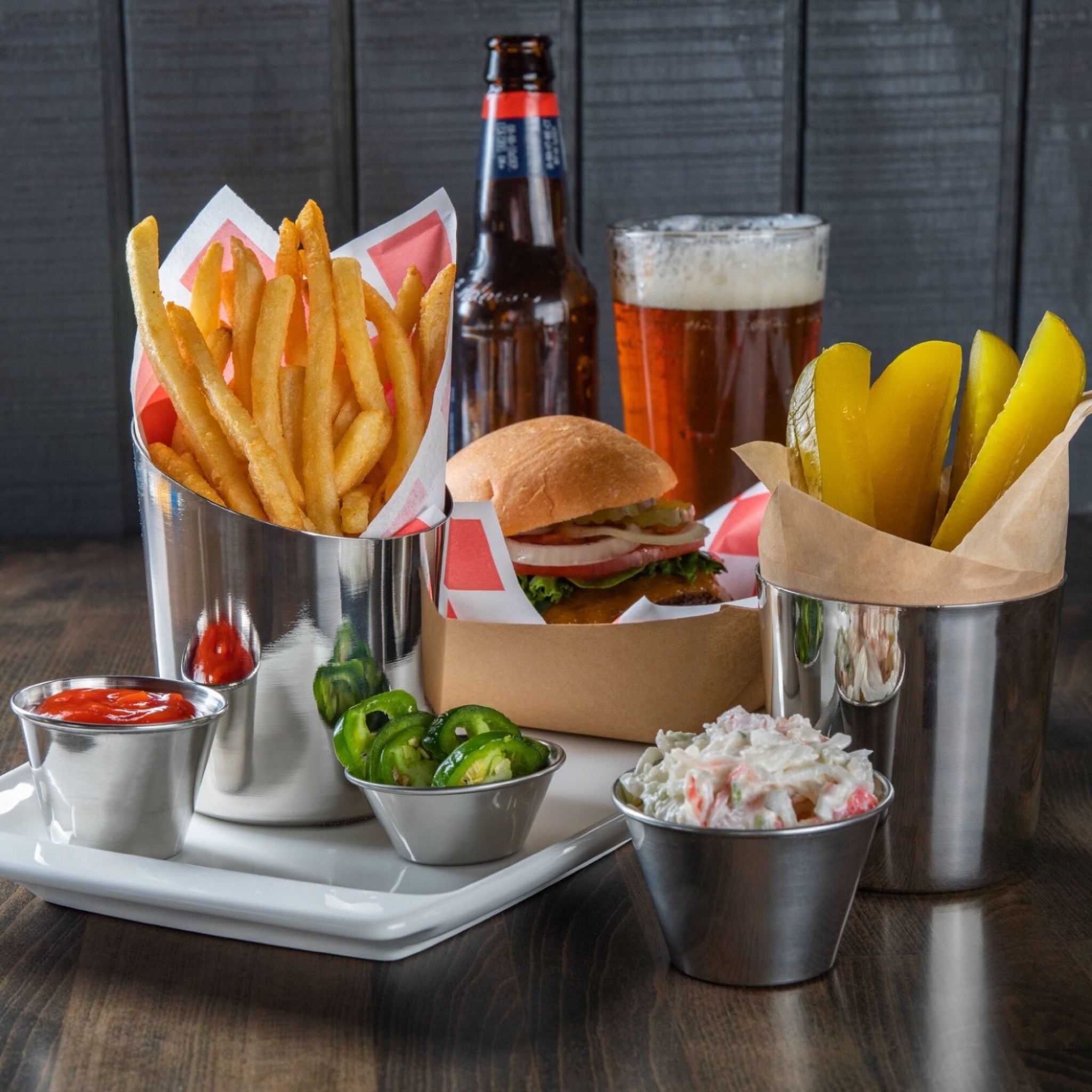 Salsera práctica de acero inoxidable con diseño tipo ramequín de 12 cm, ideal para servir salsas, aderezos o guarniciones con un estilo profesional y duradero.