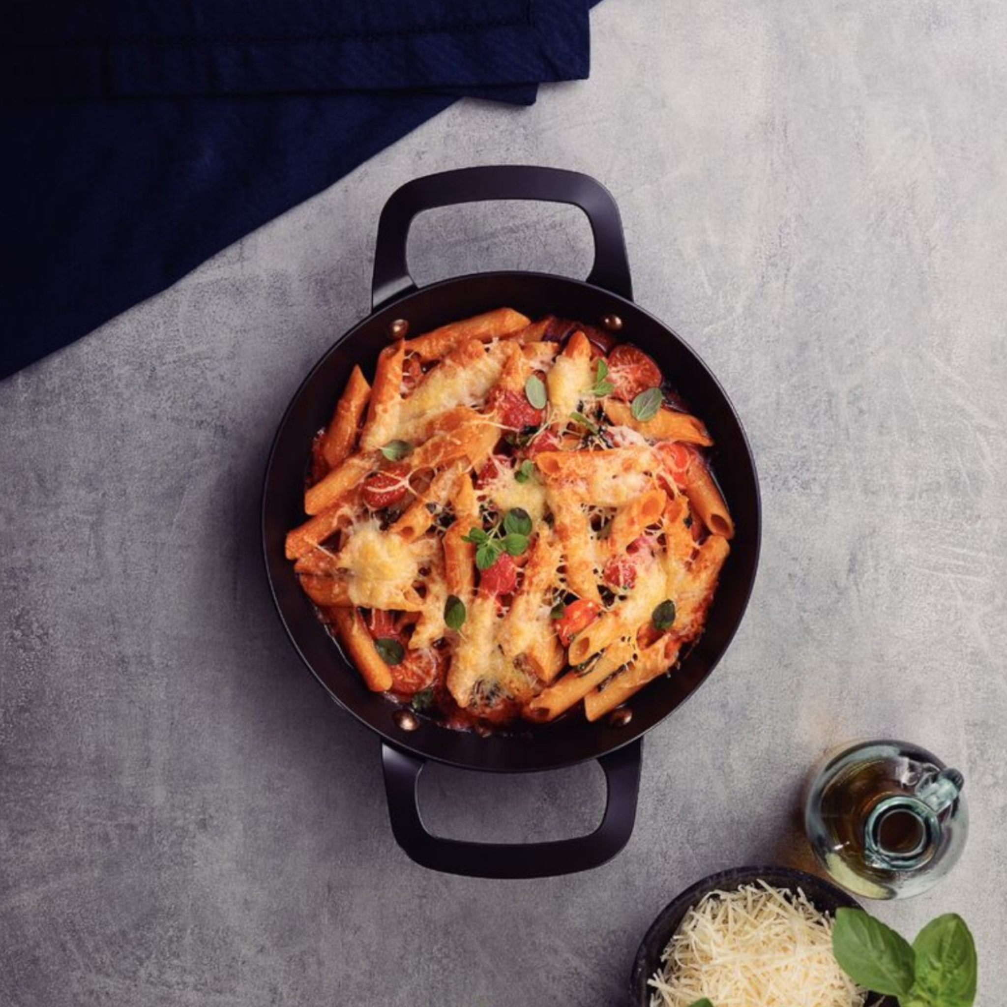 - Compatible con todas las fuentes de calor, incluyendo inducción, gas, eléctrica y horno.