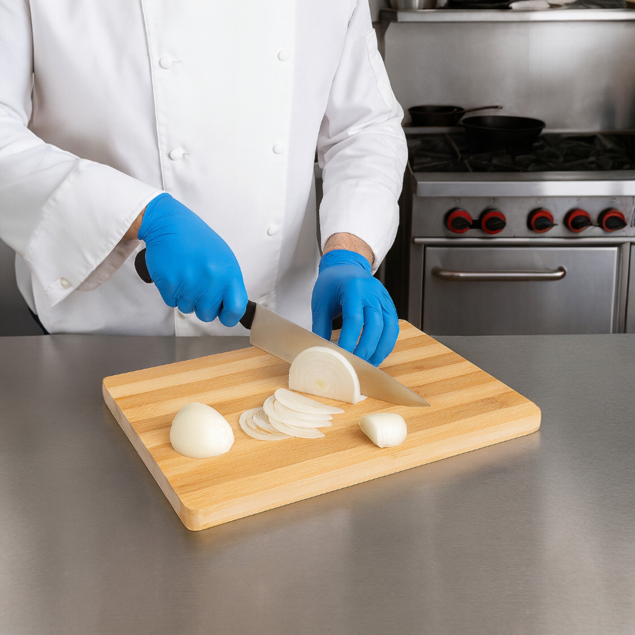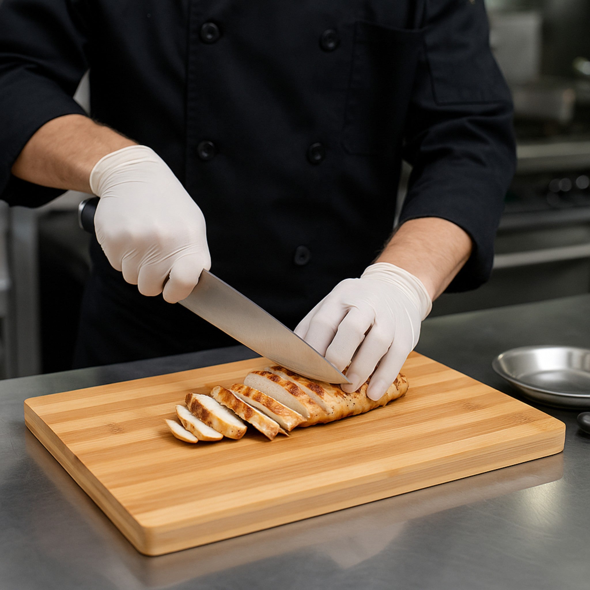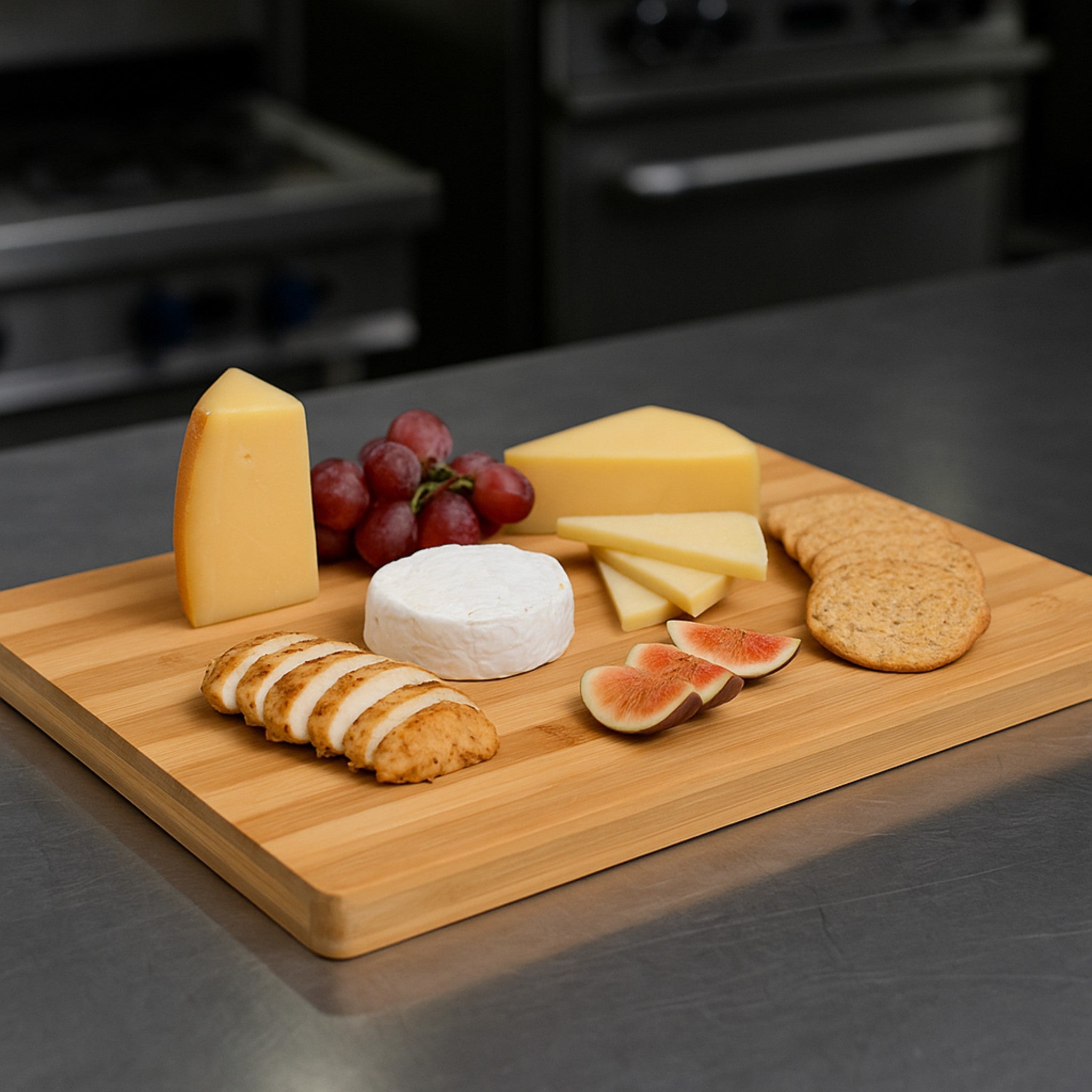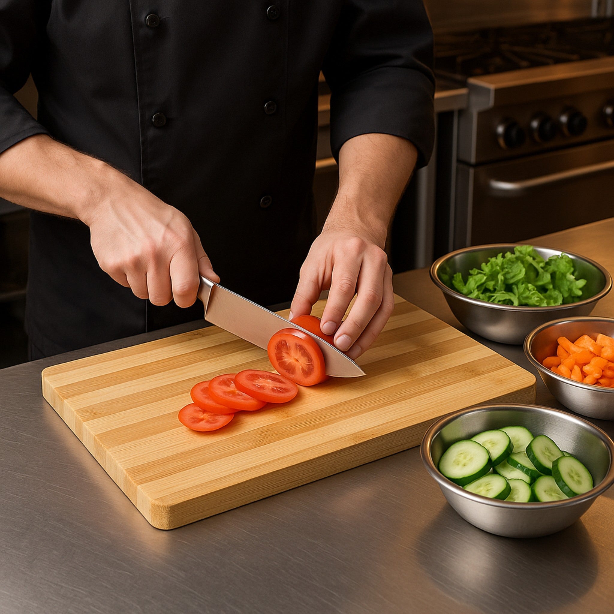 Tabla para picar de bambú de 34x24x1.7 cm, ideal para cortar frutas, verduras, carnes y pan sin dañar los cuchillos. Fabricada con bambú natural de alta densidad, combina durabilidad, ligereza y un acabado elegante para cualquier cocina profesional o doméstica.