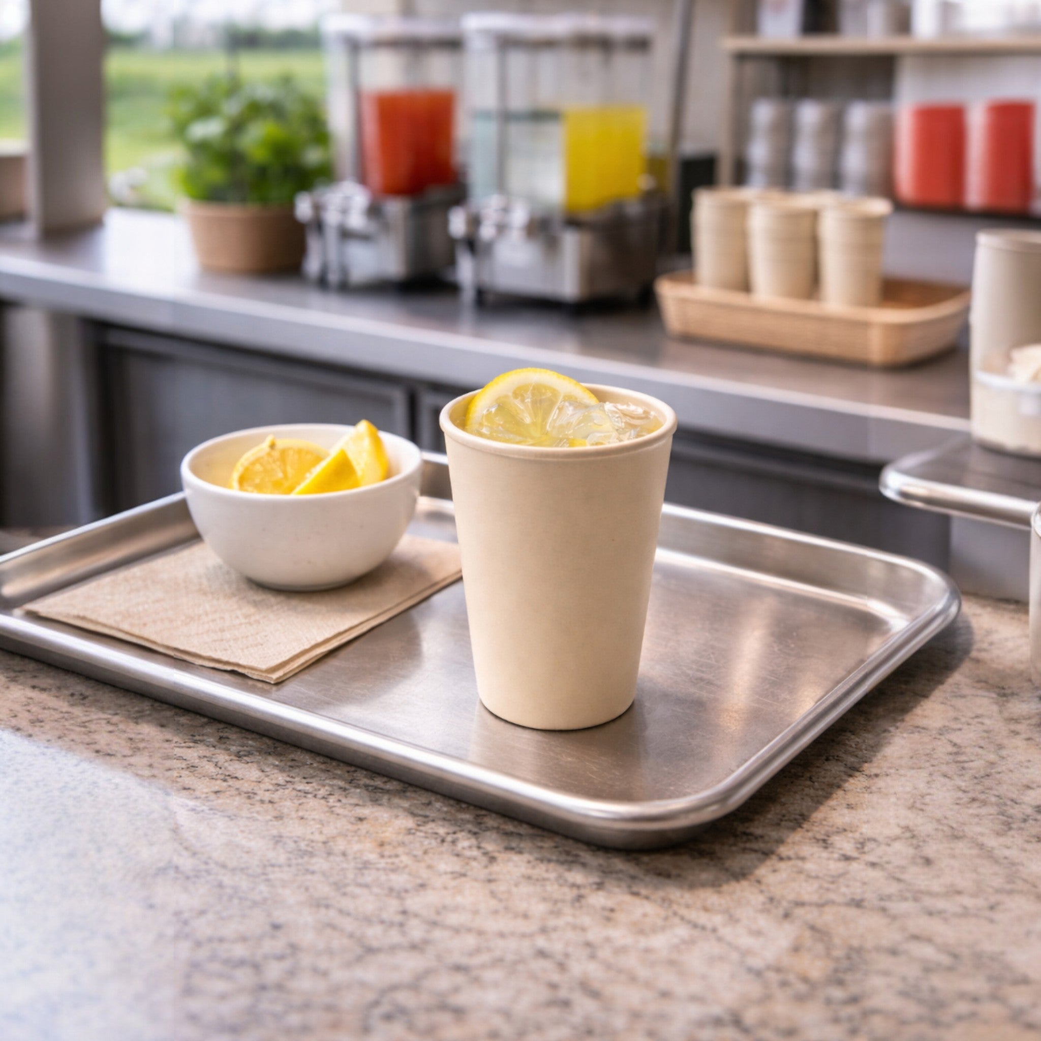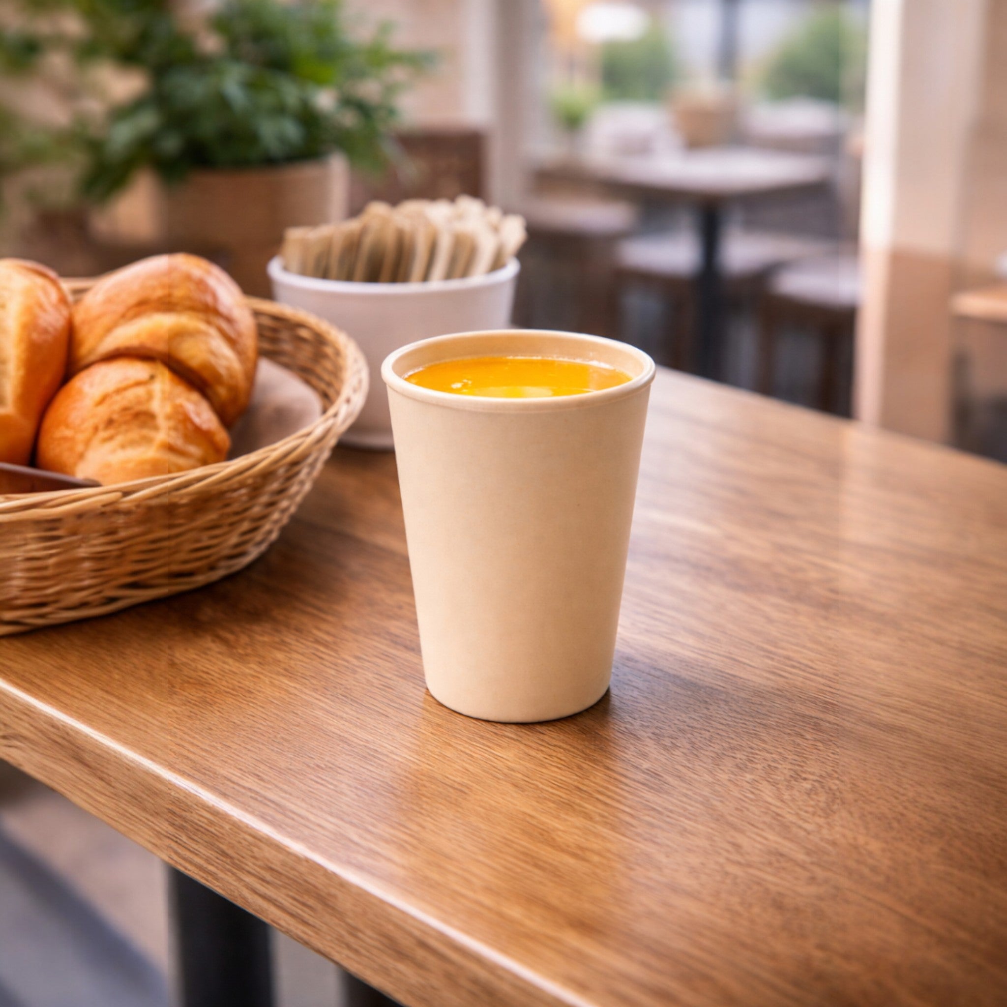 Vaso de melamina de 205 ml diseñado para el servicio profesional en restaurantes, cafeterías u hoteles. Su acabado beige aporta una estética neutra y elegante, ideal para bebidas frías u calientes en mesas modernas, terrazas o áreas de autoservicio.