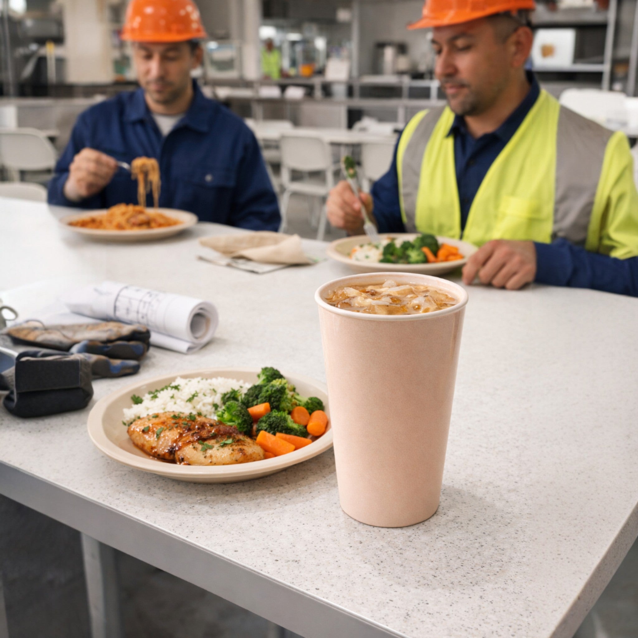 Diseño funcional en color beige: estética sobria que combina con vajilla institucional y estilos contemporáneos o rústicos.
