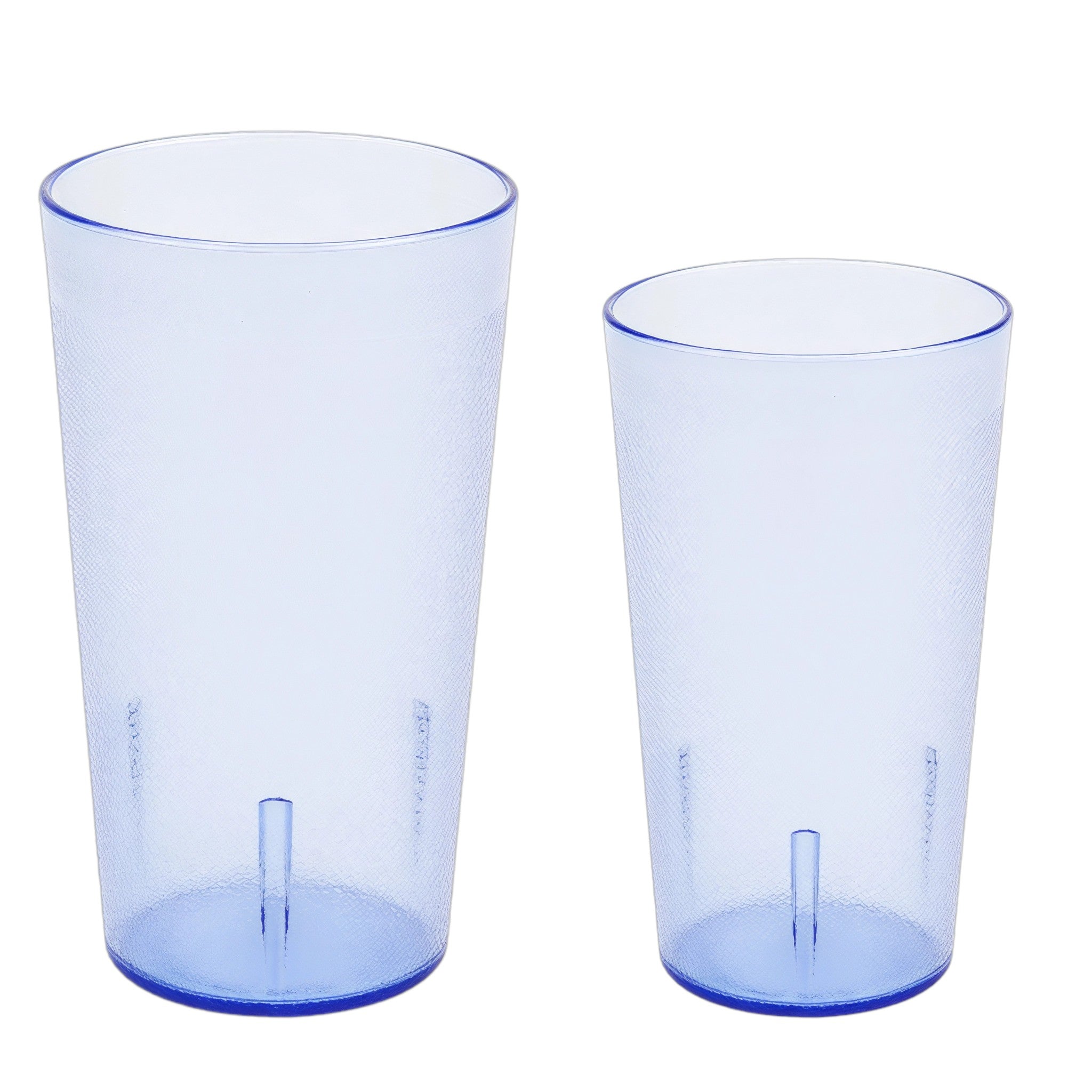 Vaso de poliestireno SAN en color azul, resistente y con acabado brillante que aporta un estilo moderno a la mesa. Su diseño es ideal para negocios de comida que requieren practicidad y durabilidad. Disponible en dos tamaños, se adapta fácilmente a distintos tipos de bebidas.