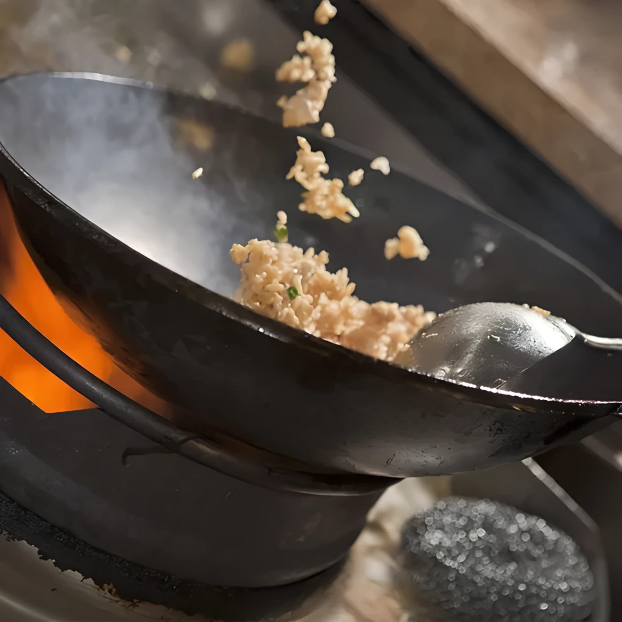 Wok chino tradicional fabricado en acero al carbón, ideal para salteados, frituras y cocina a alta temperatura. Su forma profunda y paredes inclinadas permiten una cocción rápida y uniforme, con auténtico sabor oriental.