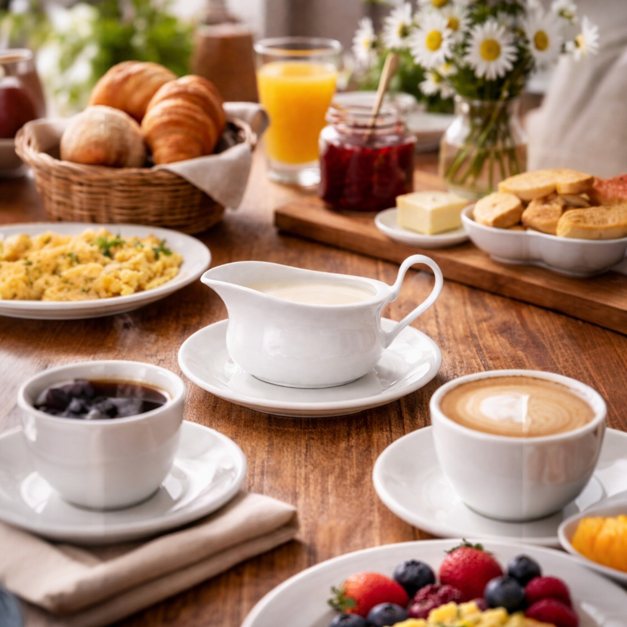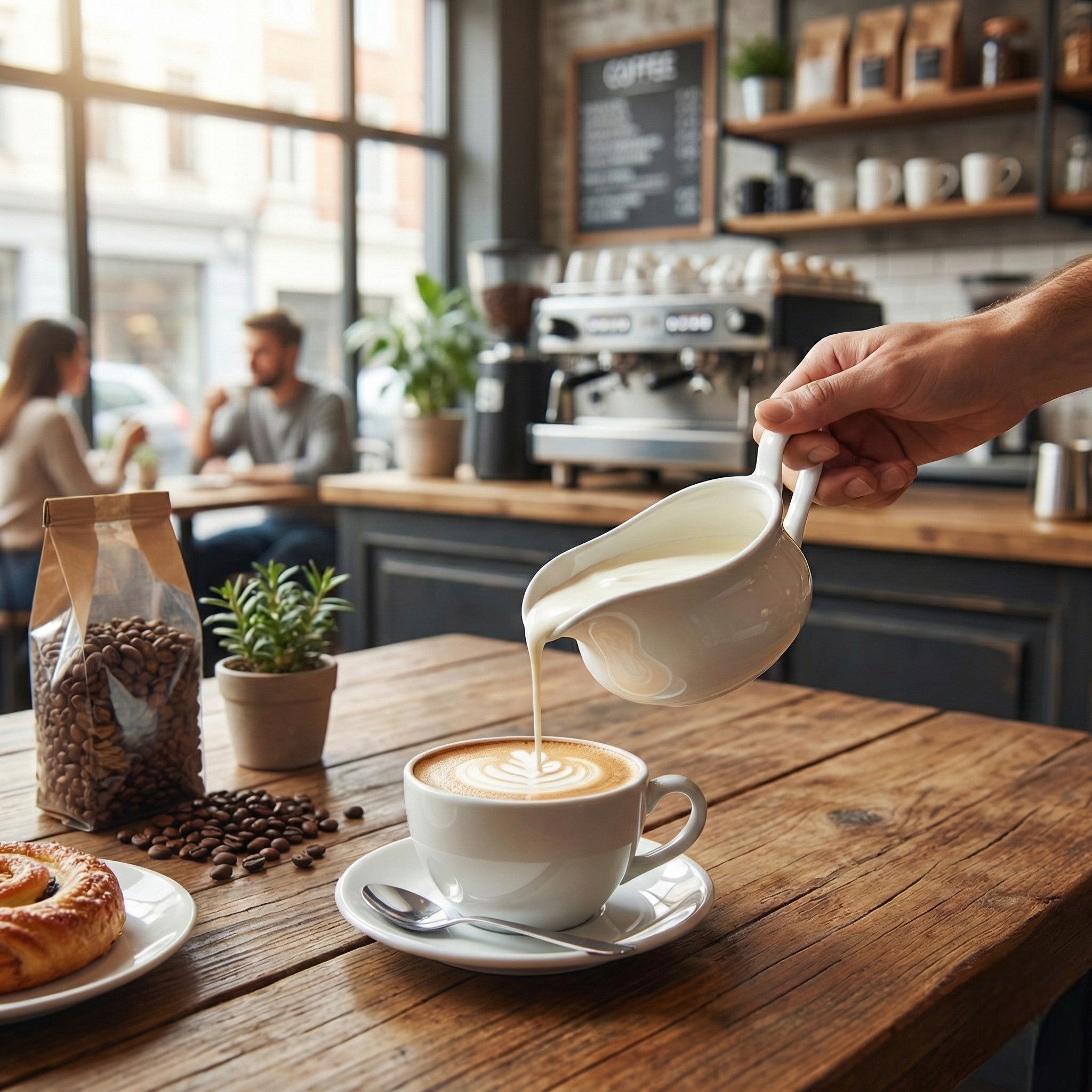 Cremera de diseño elegante y funcional, ideal para servir leche, crema o jarabes con una presentación limpia y profesional. Perfecta para cafeterías, hoteles y servicio de mesa que buscan complementar la experiencia del café.